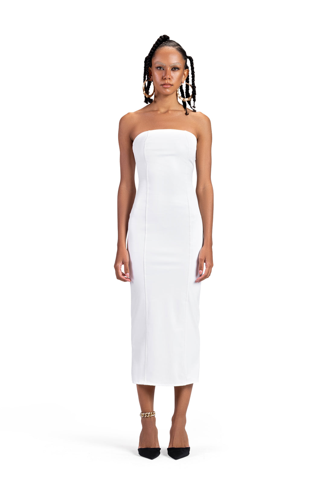 LEATHER MIDI WHITE DRESS